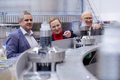 Die rheinland-pfälzische Arbeitsministerin Dörte Schall folgte der KHS-Einladung, um diese Aufgaben persönlich vor Ort zu diskutieren. So nahm sich die Ministerin nach der Begrüßung Zeit für einen ausführlichen Werksrundgang mit intensiven Gesprächen. Dabei betonte sie, dass die Bedeutung demokratischer Prinzipien weit über die Politik hinaus bis in den betrieblichen Alltag reiche. „Sozialpartnerschaft ist gelebte Demokratie im Betrieb. In Zeiten großer Herausforderungen und Unsicherheiten ist Mitbestimmung essenziell für die erfolgreiche Gestaltung der Arbeitswelt. Rheinland-Pfalz setzt auf moderne Mitbestimmungsrechte und qualifizierte Fachkräfte, um den Herausforderungen der Zukunft entschlossen zu begegnen“, betonte Schall. „Wo Mitbestimmung gelebt wird, wächst das notwendige Vertrauen sowie die Bereitschaft, Veränderungsprozesse zu gestalten und verlässlich umzusetzen.“